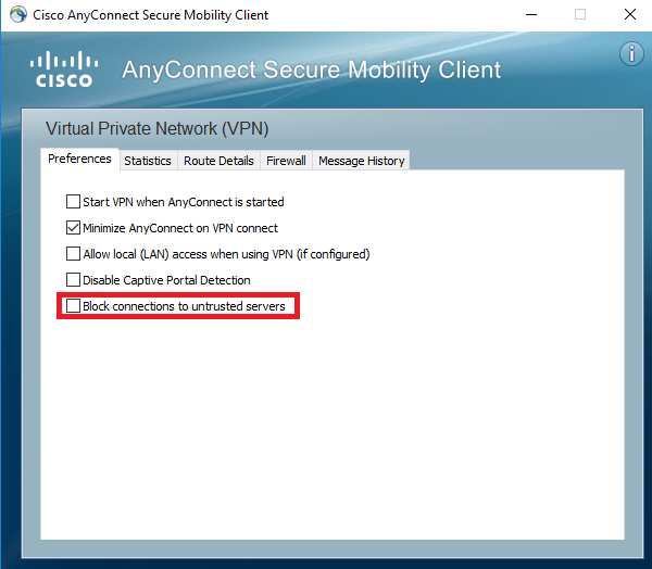 اکنون تیک block connections to untrusted servers را بردارید و خارج شوید. بقیه گزینه ها تغییر ندهید
