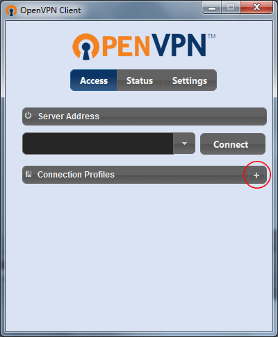 ۲- پس از اجرای برنامه OpenVPN برای وارد کردن فایل کانفیگ بر روی + کلیک کنید