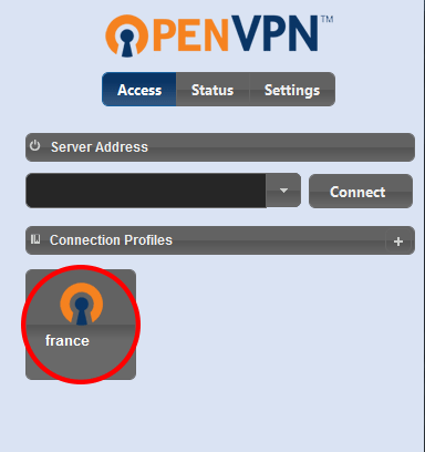 ۶- پس از ورود فایل تنظیمات ، سرور اپن وی پی ان مورد نظر را انتخاب کرده تا برنامه وصل شود