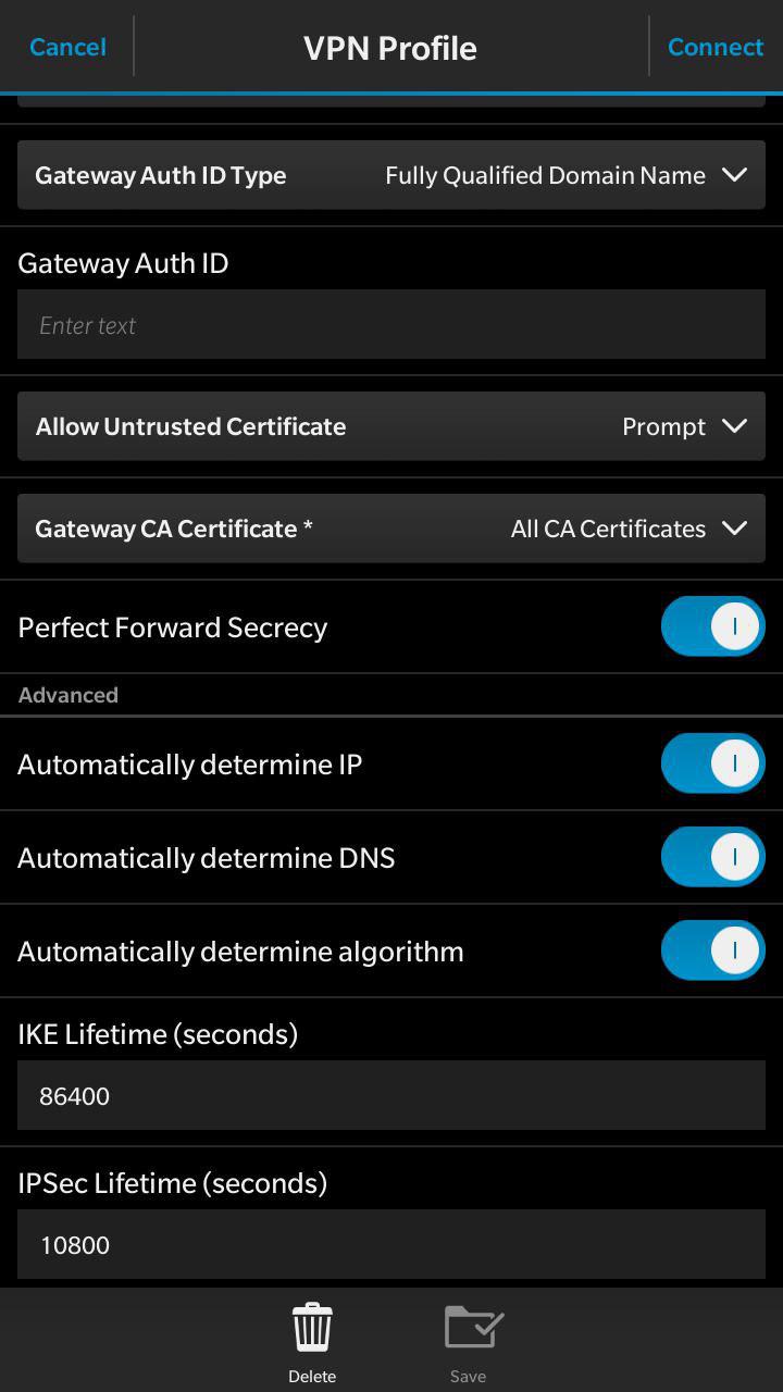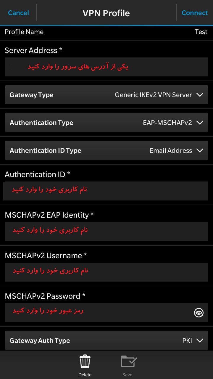 توجه : اگر با تنظیمات بالا کانکت نشدید ، قسمت gateway type را روی microsoft تنظیم و مجدد کانکت بشید.
