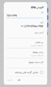 یک نام دلخواه مثل TEH VPN انتخاب کنید